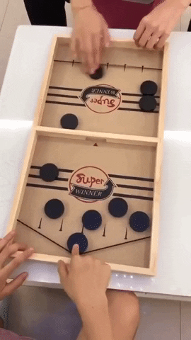 ✔ High quality and durable – You will not break your Fast Sling Puck over a frenzy game. The board and the pucks are made of top-quality wood. The two puck firing strings are made of strong and resistant elastic.