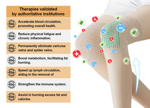 Even if you don't exercise regularly and eat an unbalanced diet, our PEARLMOON™ Ionic Correction Lymphatic Detoxification Long Tube Silk Stockings can help you achieve your weight loss goals.80% Far Infrared Therapy can help you reach your ideal weight. These stockings help increase metabolism, stimulate the lymphatic system, detoxify the body, and eliminate accumulated cellulite and water retention. The fat-burning fabric with tourmaline efficiently metabolizes fat, allowing you to burn fat while you sleep, work, or exercise, and create a perfect body curve overnight!