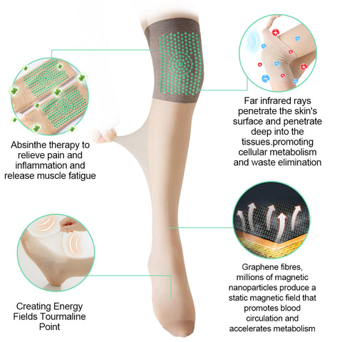 Ionic Detox Stockings are soaked in wormwood wine and utilize a special process to immobilize tourmaline, which releases ketones and negative ions. It combines Far Infrared Therapy and Wormwood Wine Therapy to address pain in different parts of the body, relax tense and spastic muscles, strengthen muscle tissues, reduce the buildup of cellulite in the body and treat varicose veins. After a long period of observation, it even prevents cancer, gout, osteomyelitis, Morton's neuroma, arthritis and metastatic pain from the lower back (S1 root lesion)
